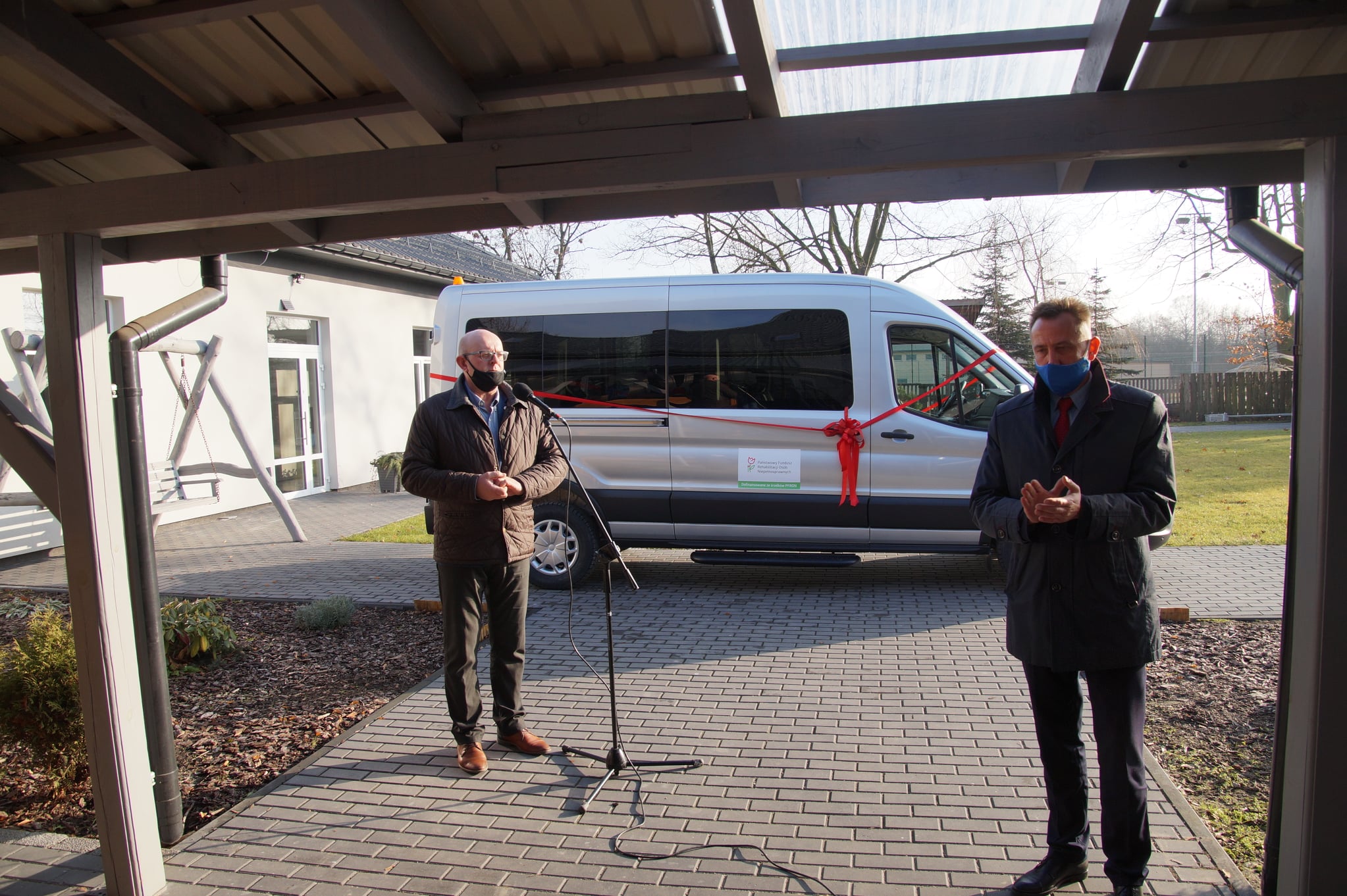 17 grudnia 2020 w naszej placówce odbyło się uroczyste przekazanie mikrobusu 9-cio osobowego marki Ford przeznaczonego do przewozu osób niepełnosprawnych, który trafił do nas dzięki dofinansowaniu Państwowego Funduszu Rehabilitacji Osób Niepełnosprawnych z projektu „Programu wyrównywania różnic między regionami III” w obszarze D. Wkład własny do projektu zapewnił Powiat Jędrzejowski. Samochód został przekazany przez dyrektora Świętokrzyskiego Oddziału PFRON Andrzeja Michalskiego oraz Starostę Jędrzejowskiego Pawła Farynę, a poświęcenia dokonał przyjaciel naszego Warsztatu Opat Archiopactwa Ojców Cystersów Rafał Ścibiorowski. Uroczyste przekazanie odbyło się w miłej, świątecznej atmosferze, a osoby obecne na uroczystości złożyły świąteczne życzenia dla obecnych oraz nieobecnych uczestników WTZ i ich rodzin. Nasz Warsztat bardzo dziękuje wszystkim, którzy przyczynili się do pozyskania nowego samochodu, a w szczególności wyżej wymienionym czyli PFRON i Powiat Jędrzejowski oraz Powiatowemu Centrum Pomocy Rodzinie i naszej macierzystej placówce czyli Specjalnemu Ośrodkowi Szkolno-Wychowawczemu im.M.Grzegorzewskiej w Jędrzejowie.